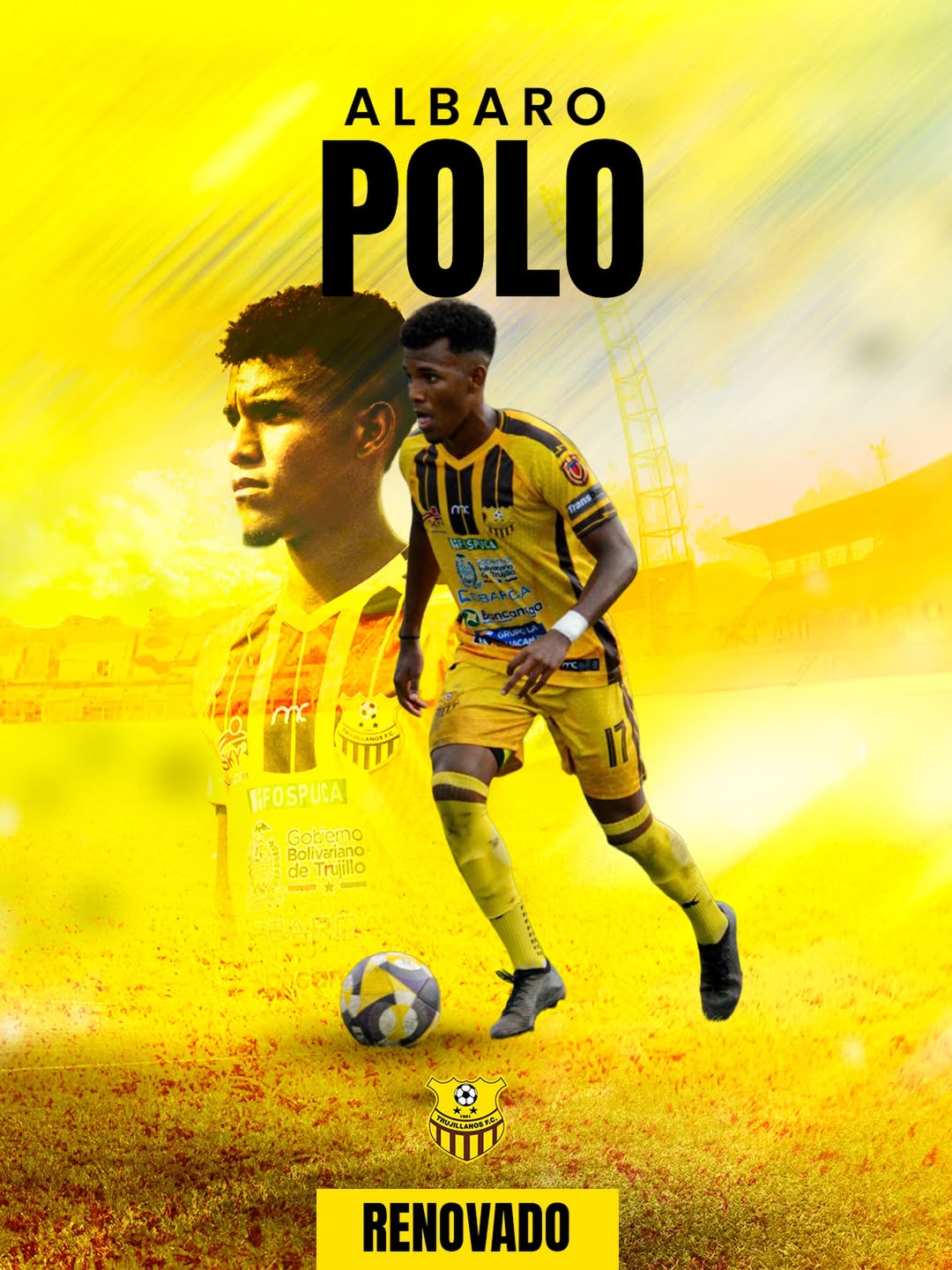Valera, Venezuela. — Trujillanos FC oficializó la renovación de Álbaro Polo, quien continuará defendiendo la camiseta aurimarrón para la próxima temporada, reafirmando su compromiso con el proyecto deportivo que acompaña el regreso del club a la élite del fútbol nacional.